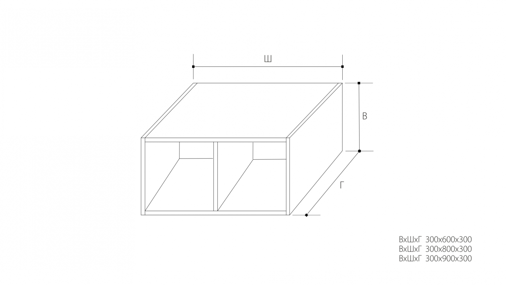 ВхШхГ: 300х800х300 мм.